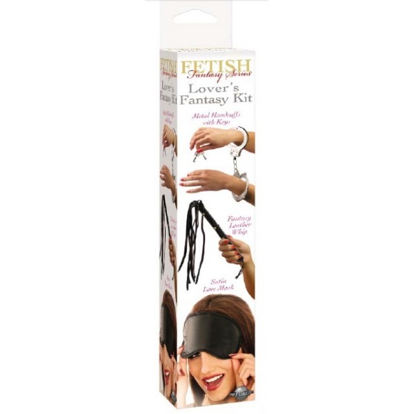 Fetish Fantasy Kit de la Fantasía Edición Limitada. Exploren su lado travieso con el Lover’s Fantasy Kit. El kit incluye un Látigo de cuero, Esposas metálicas con llaves, y un Antifaz de amor. Perfecto para juegos de rol y sacar su lado salvaje!
