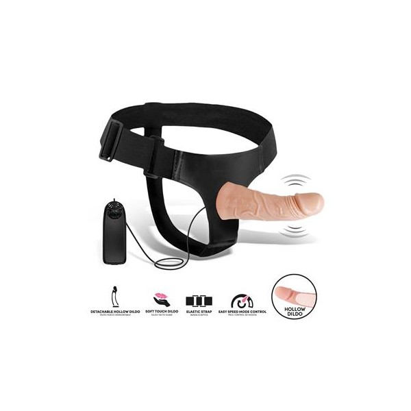 Eleto es un arnés que incluye un dildo hueco con función de vibración. Es fácilmente desmontable y podrás disfrutar de estas vibraciones con el control remoto con cable incluido.