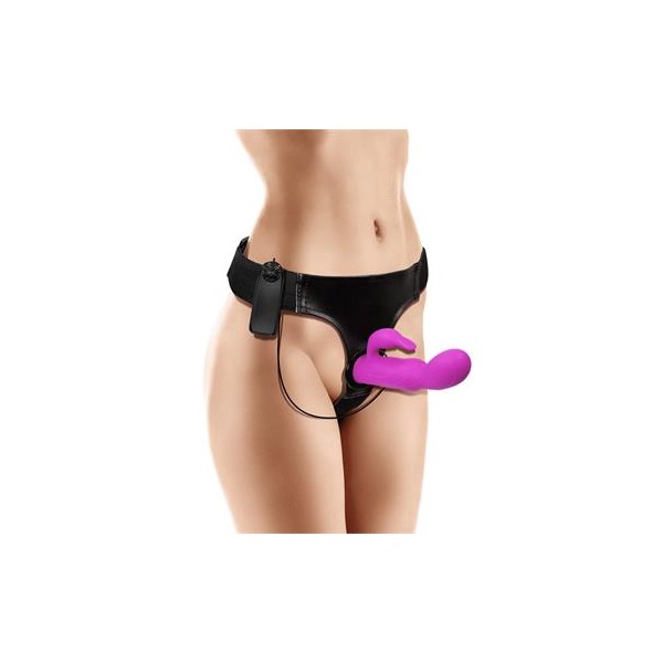 Hymax es un arnés que incluye un dildo vibrador con conejito.