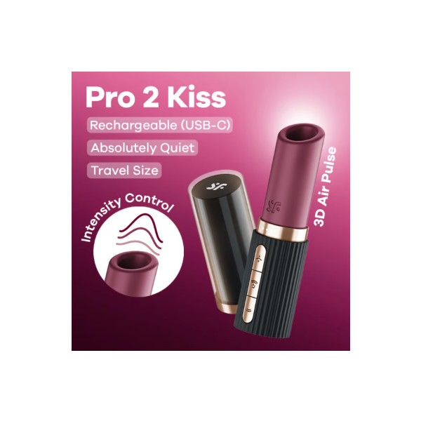 Descubre un beso inolvidable: el Pro 2 Kiss combina un diseño discreto con estimulación por ondas de presión sin contacto. Pasa por una barra de labios para que puedas llevarlo discretamente en el bolso.